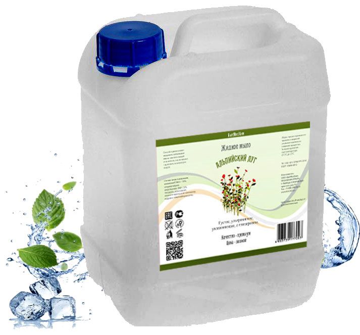 Мыло жидкое Альпийский луг в объеме 5 литров в пластиковой канистре. Для профессиональной уборки и домохозяйств.