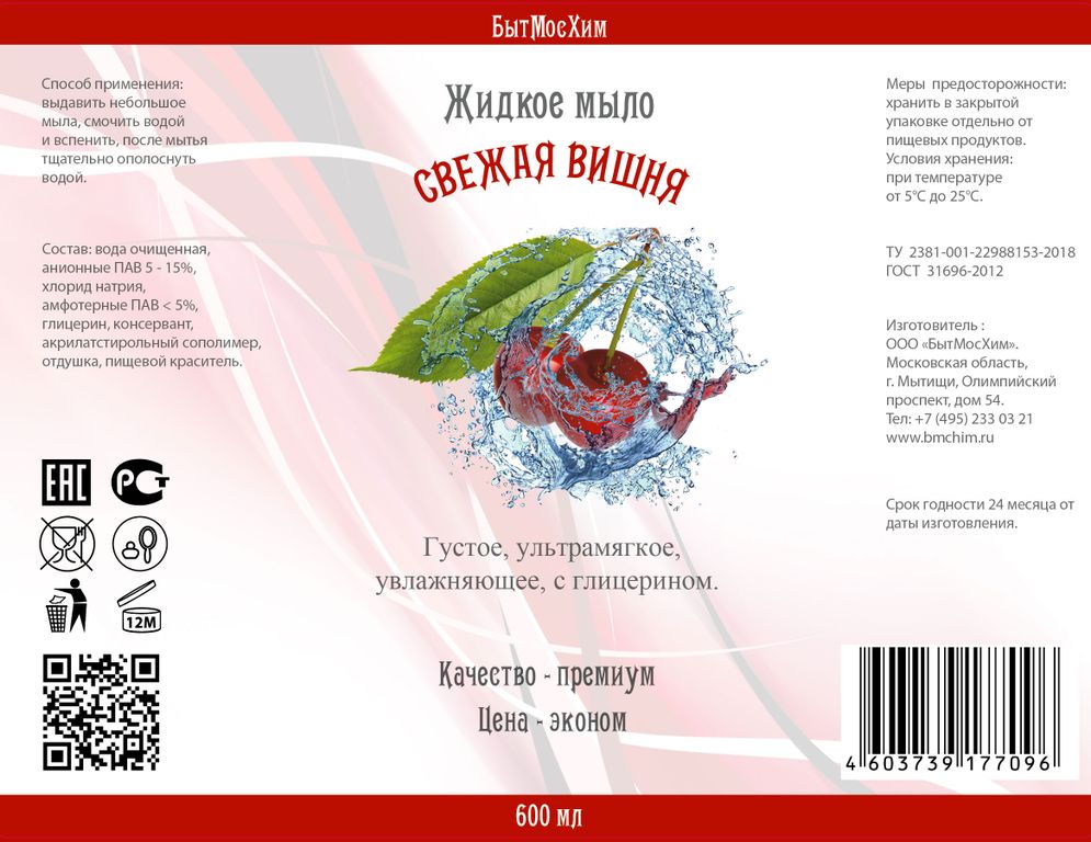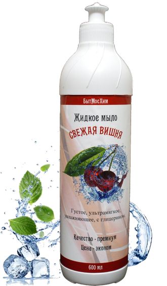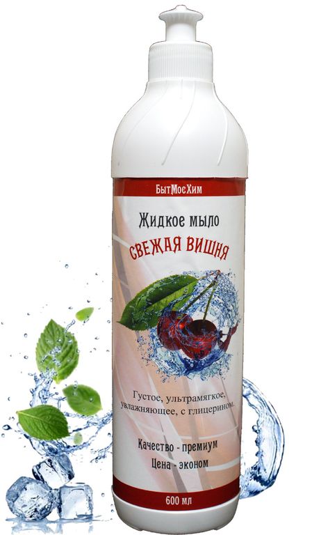 Жидкое мыло с ароматом вишни. Бережная формула глицерином, не сушит кожу.